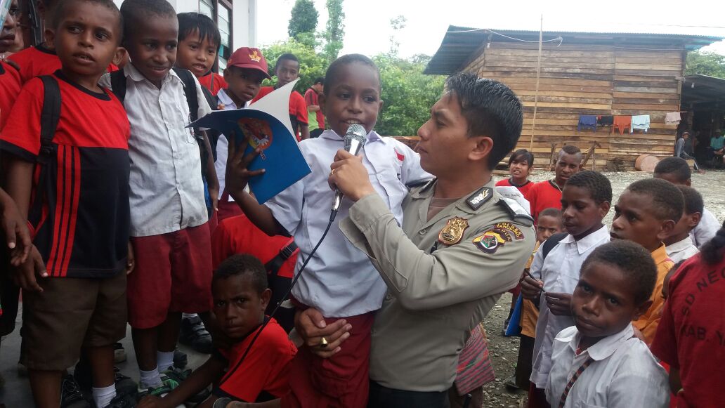 Tanamkan Rasa Cinta Tanah Air, Polisi Yahukimo Ajak Siswa SD Nyanyika Lagu Nasional