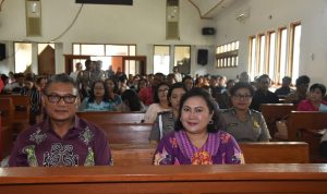 Jayapura-Kawattimur, Kapolda Papua Irjen Pol Drs Martuani Sormin M.Si bersama Ibu melaksanakan Ibadah Minggu Pagi bertempat di Gedung Gereja HKBP (Huria Kristen Batak Protestan) Nommensen Dok 7 Jayapura Kota Jayapura Papua. Minggu (28/10/18).