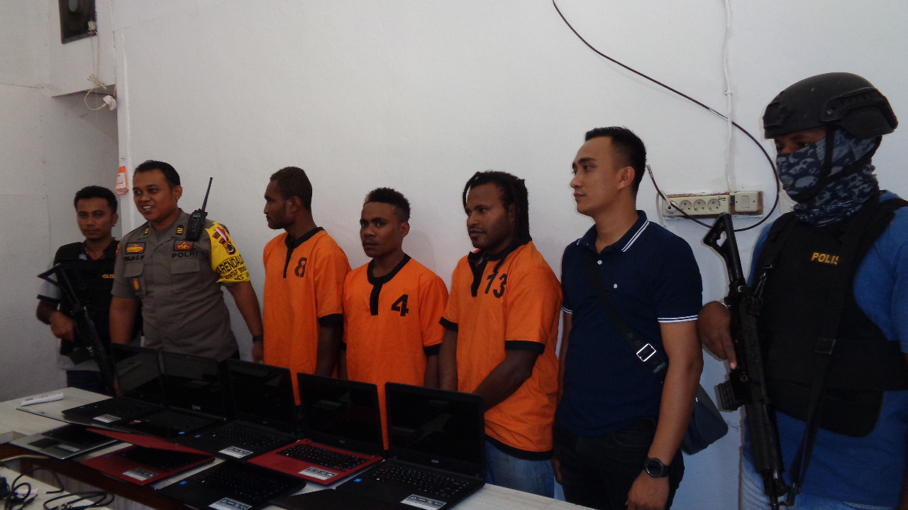 Kapolres Jayapura AKBP Victor Dean Mackbon, SH., S.IK., MH., M.Si saat dikonfirmasi melalui Kasat Reskrim Iptu Oscar F. Rahadian, S.IK., MH mengatakan, Kelimanya ditangkap setelah Polisi menerima laporan dari guru SMP N-5 Kehiran, Frans Wally (49) yang menyebutkan bahwa, 14 laptop berbagai merk milik para guru telah dicuri pada tanggal 8 Januari 2019 lalu.