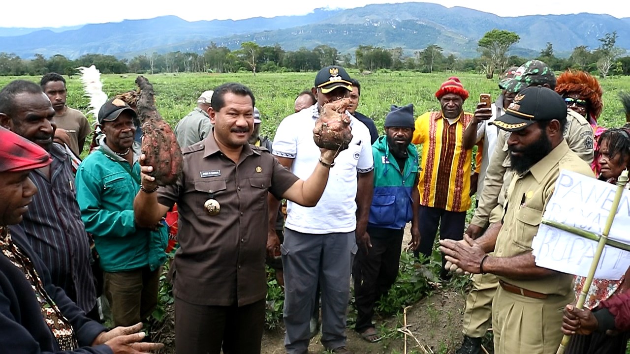 Wamena (KT) – Bupati Kabupaten Jayawijaya, Jhon Richard Banua, SE.M.Si meminta peran kepala distrik dan kepala kampung yang ada di Kabupaten Jayawijaya untuk dapat mengajak dan memotivasi pemuda dan pemudi dalam hal membuka lahan perkebunan. Hal itu diungkapkan Bupati Jayawijaya, Jumat (5/4/2019) usai melakukan panen Raya Ubi Jalar di Kelompok Tani Kampung Hetuma Kabupaten Jayawijaya.