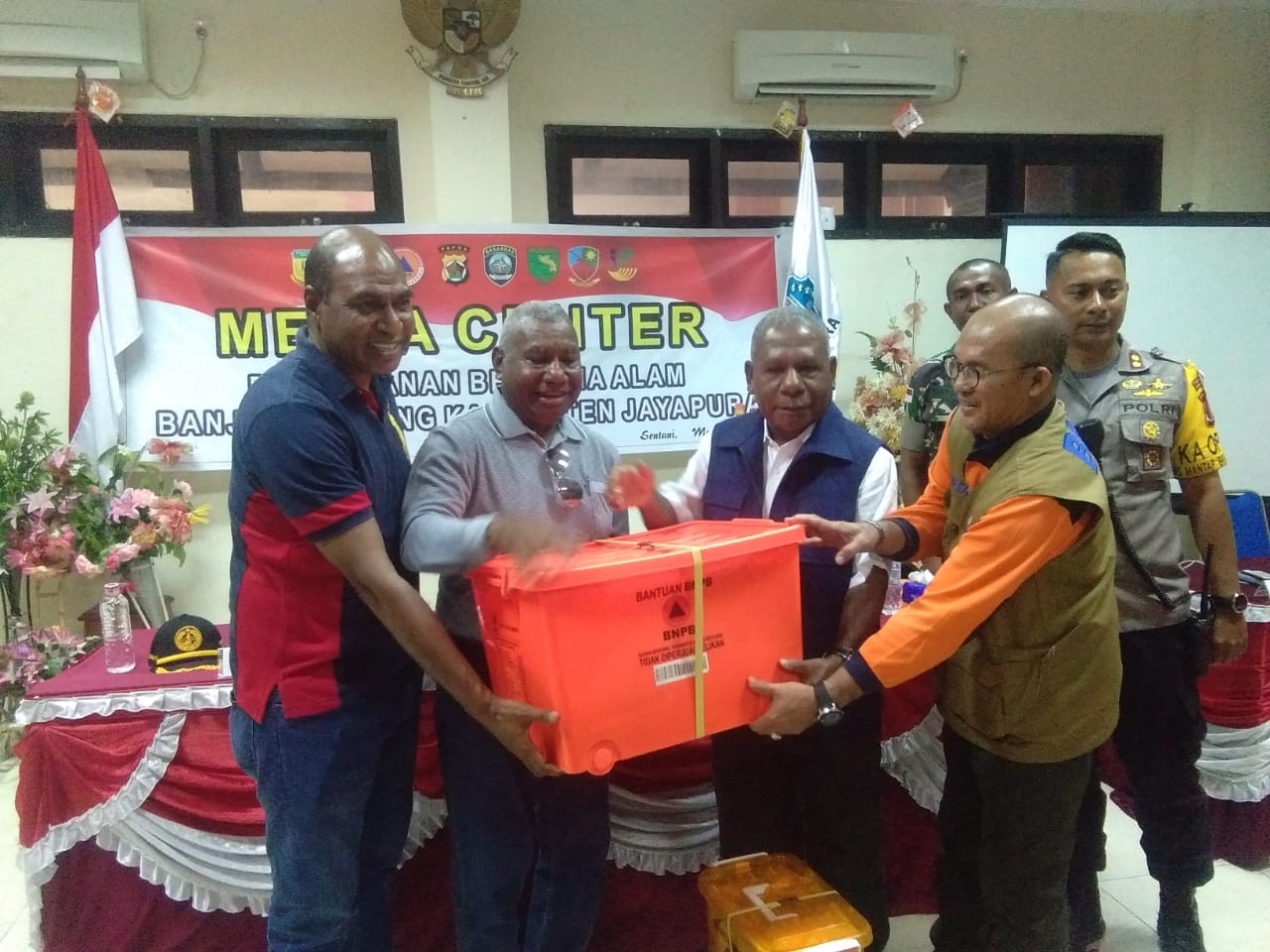“ Walaupun terlambat dan baru sekarang bantuan diberikan tetapi kami dari Pemerintah Provinsi Papua Barat dimasa tanggap darurat telah mengirimkan tim medis, relawan, PMI guna membantu penanganan korban dan pengungsi banjir bandang di Sentani,” kata kepada wartawan di Kantor Bupati Jayapura, Jumat (5/4/2019) pagi.
