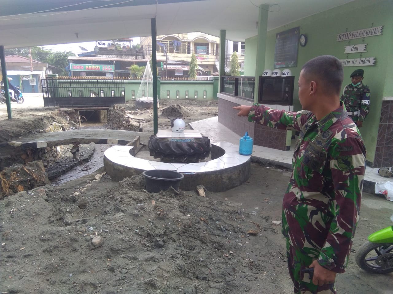 Sentani,(KT)- Komandan Yonif RK 751/VJS, Mayor Inf Rofi irwansya SIP M si menyebutkan bahwa,penyempitan drainase didepan Batalion 751 yang menyebabkan timbulnya banjir ketika hujan deras mengguyur Kota Sentani dan hal itu telah berlangsung cukup lama sehingga solusinya drainase diperlebar