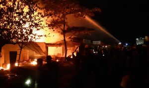 Jayapura Kota – (KT) 100 unit kios dan lapak milik warga yang berada di Blok A pasar Youtefa, Ludes terbakar, Minggu (7/4) malam pukul 19.30 WIT.