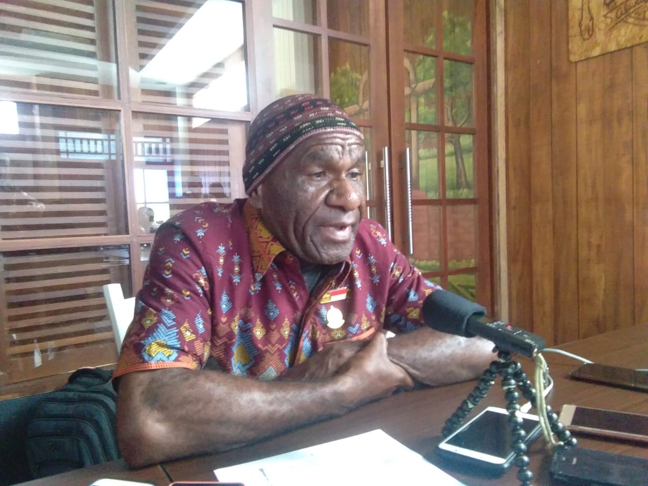“ Saya sudah kasih gelar itu melalui adat, maka saya tidak akan cabut gelar yang telah diberikan karena kalau dicabut itu namanya salah apalagi bila dicabut dan adat juga akan marah, maka gelar itu tetap dan tidak akan dicabut kembali. Tidak boleh juga dicabut sebab pemberian adat itu merupakan adat budaya saya,” katanya kepada wartawan ketika menanggapi desakan forum kerja oikumenis gereja-gereja di Tanah Papua, Kamis (11/4/2019) siang di Jayapura.