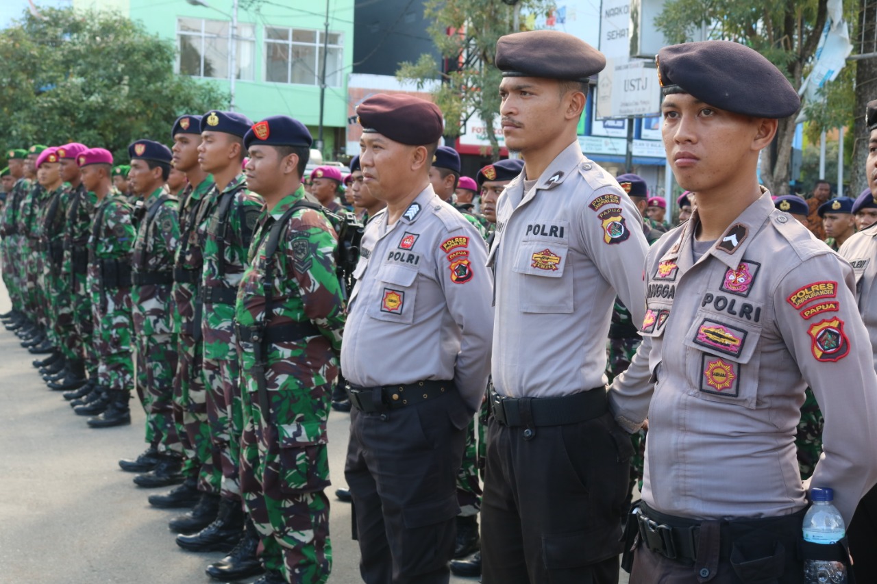 Jayapura Kota-(KT) Kapolres Jayapura Kota AKBP Gustav R. Urbinas, SH., S.IK melakukan pengecekan kembali personil pengamanan jelang Rapat Pleno Tingkat Distrik yang akan dilaksanakan esok hari. Saat melaksanakan pengecekan personil siang tadi, senin (22/19) Kapolres Jayapura Kota AKBP Gustav R. Urbinas, SH., S.IK ketika dikonfirmasi mengatakan pengecekan ini dilakukan untuk memastikan kesiapan personil dalam melakukan pengamanan dan juga memastikan situasi terus berlangsung kondusif jelang Pleno Tingkat Distrik esok pagi nanti. Lanjut Kapolres, dimana besok akan serentak dilaksanakan Pleno Tingkat Distrik di Kota Jayapura sehingga saya harus turun langsung untuk mengecek kesiapan pengamanan. “Siang tadi direncanakan distrik Abepura akan melakukan pembukaan rapat pleno namun hanya di lakukan pembukaan saja dan untuk rekapitulasi suara akan dilanjutkan esok hari,”terang AKBP Gustav. Dijelaskan juga bahwa untuk total personil yang dilibatkan dalam pengamanan Rapat Pleno Tingkat Distrik Se-Kota Jayapura sekitar 550 personil gabungan TNI/Polri yang di bagi ke lima distrik. Kapolres Jayapura Kota juga mengingatkan kepada Kapolsek sebagai penanggung jawab wilayahnya agar terus mengawasi dan melarang orang lain selain petugas Pleno, Bawaslu Tingkat Distrik, TNI/Polri berada di lokasi kota suara. “Diharapkan kegiatan Rapat Pleno tingkat distrik yang dilaksanakan esok hari dapat berjalan aman dan lancar,”imbuh AKBP Gustav R. Urbinas. SH., S.IK.