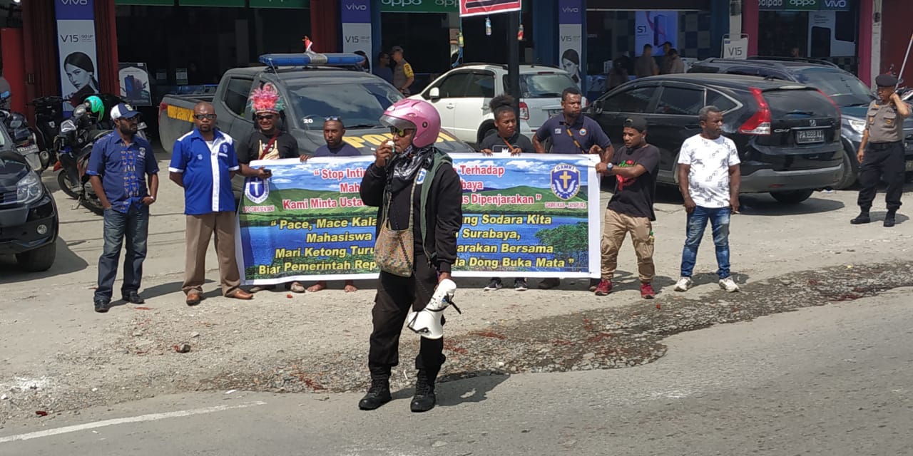 Ketua Gerakan Mahasiswa Kristen Indonesia,(GMKI) Cabang Sentani,Berto Tungkoye didampingi Ketua Gerakan Angkatan Muda Kristen Indonesia,(GAMKI) Kabupaten Jayapura, Mesak Samon mengatakan, aksi demo yang kami lakukan tak lain buntut dari isu-isu yang memanas khususnya yang menimpa mahasiswa Papua di Kota Surabaya,” katanya.