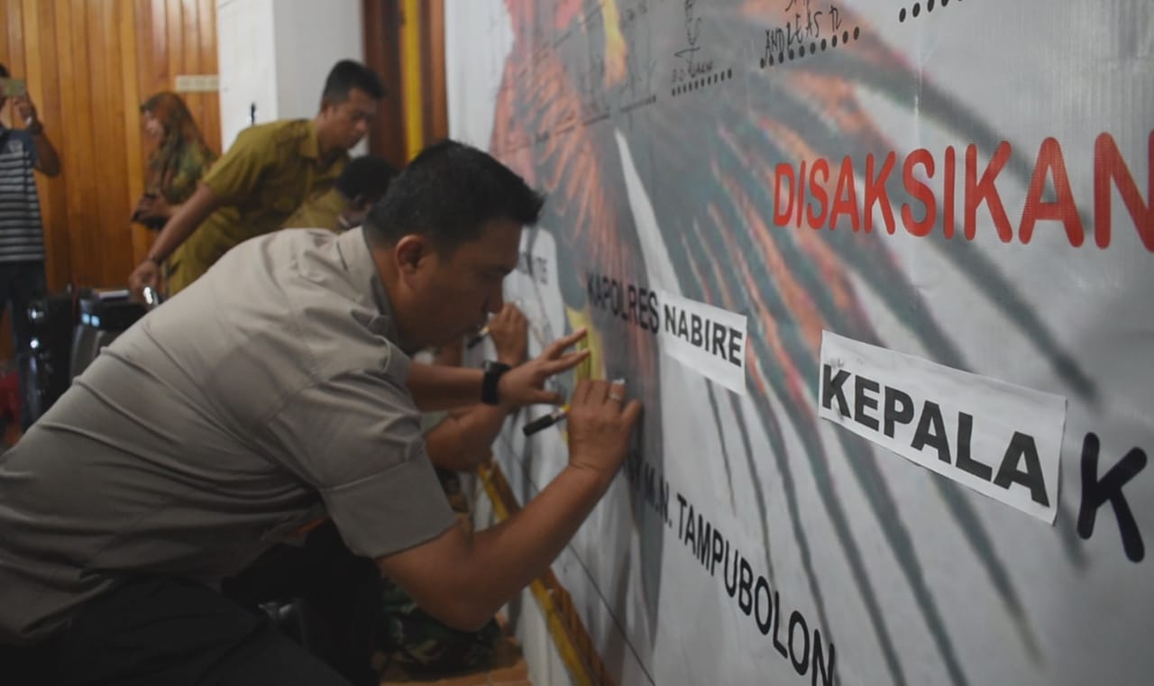 Setelah dilakukan pengucapan deklarasi damai, dilanjutkan dengan Penandatanganan Deklarasi Damai ( Deklarasi Kesepakatan Bersama ) dari para tokoh agama, adat, masyarakat, pemuda dan tokoh perempuan serta disaksikan oleh Bupati Nabire bersama Forkopimda Kabupaten Nabire.