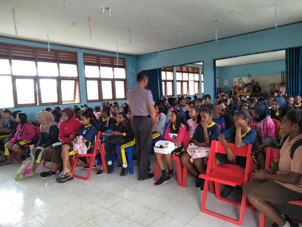 Arso, (KT) Kanit Binmas Polsek Skanto Aipda Imam Ghozali bersama Babinsa melaksanakan kegiatan Polisi pi ajar di sekolah SMP N 2 Arso Kab. Keerom. Jumat (20/09/19)
