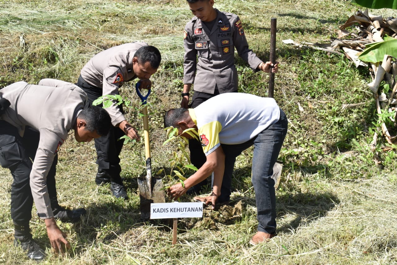Penanamam pohon ini dalam rangka Program Bapak Kapolri Jenderal Polisi Drs. Idham Azis, M.Si, “Polri Peduli Penghijauan”.