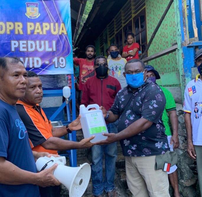 Anggota DPR Papua, Boy Markus Dawir menyebut, tiga paket alat pencuci tangan tersebut sebagai bagian keperdulian wakil Rakyat melalui DPR Papua, dalam rangka pencegahan pandemic Covid-19 di Wilayah Kota Jayapura.