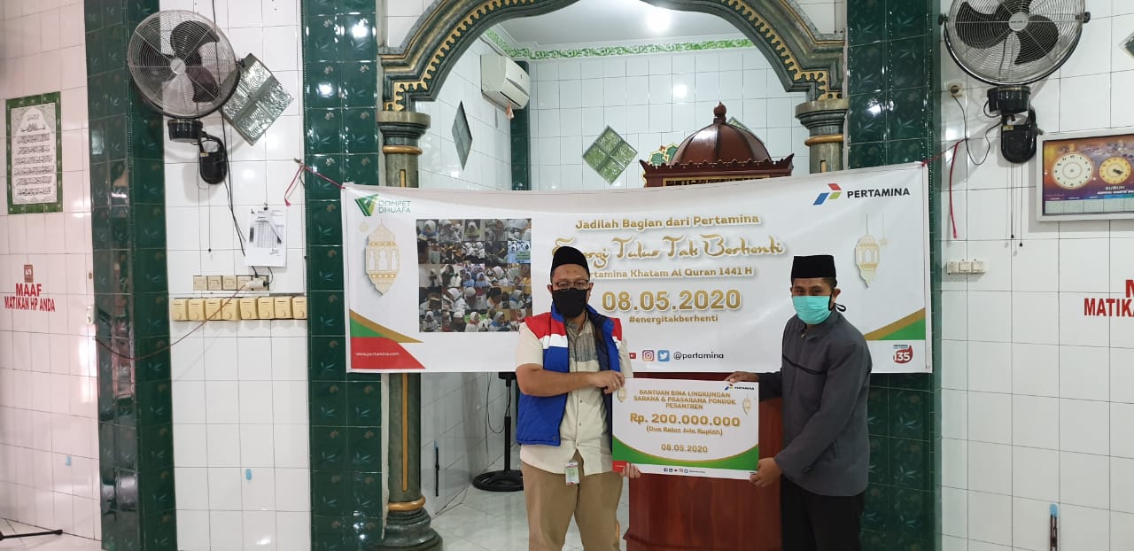“Kami mengucapkan terima kasih kepada PT Pertamina (Persero) yang telah memberikan bantuan sarana dan prasarana kepada pondok pesantren kami. Semoga dapat bermanfaat dengan baik dan kita dapat menjadi umat-Nya yang selalu bersyukur, dan senantiasa meningkatkan ibadah, doa dan ikhtiar kita dari waktu ke waktu. Semoga dengan ridha Allah SWT, kita semua mampu keluar dari cobaan dan ujian Covid-19,” ungkapnya.