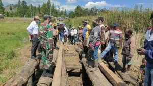 Bupati Kabupaten Jayawijaya, bersama Dandim 1702 Jayawijaya dan Kapolres Jayawijaya ikut serta memantau langsung pembangunan Jembatan Swadaya masyarakat.