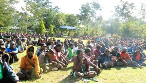 Masyarakat Saat Berkumpul Mendengarkan Arahan Ketua Tim Penanganan Covid-19 Kabupaten Tolikara