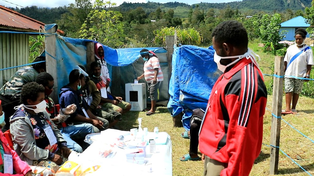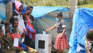 Wamena (KT) – Tempat Pemungutan Suara (TPS) 1 Kampung Sibi Distrik Abenaho Kabupaten Yalimo benar-bear menerapkan Protokol Kesehatan (Prokes) pada pemilihan Kepala Daerah Bupati dan Wakil Bupati tanggal 9 Desember 2020.