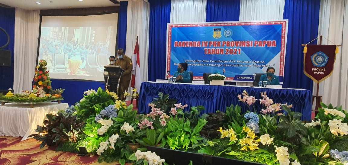 Salah satu dukungan Pemerinrah Provinsi Papua dan juga Pemerintah Kabupaten/Kota adalah pelaksanaan rapat kerja daerah (RAKERDA) PKK yang diikuti oleh Tim Penggerak PKK Provinsi dan Kabupaten Kota Se-Provinsi Papua.