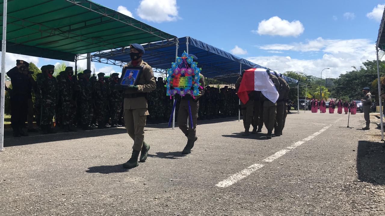 Jenazah sebelumnya disemayamkan di Mako Brimob Batalyon B, Jalan Agimuga Mile 32 untuk mendapat penghormatan terakhir.