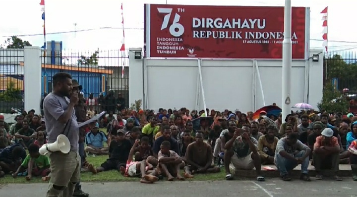 Massa Aksi Masyarakat Distrik Wouma Saat Menyampaikan Aspirasi Tertulis Kepada Wakil Bupati Jayawijaya di Kantor Otonom Weneule Huby Wamena