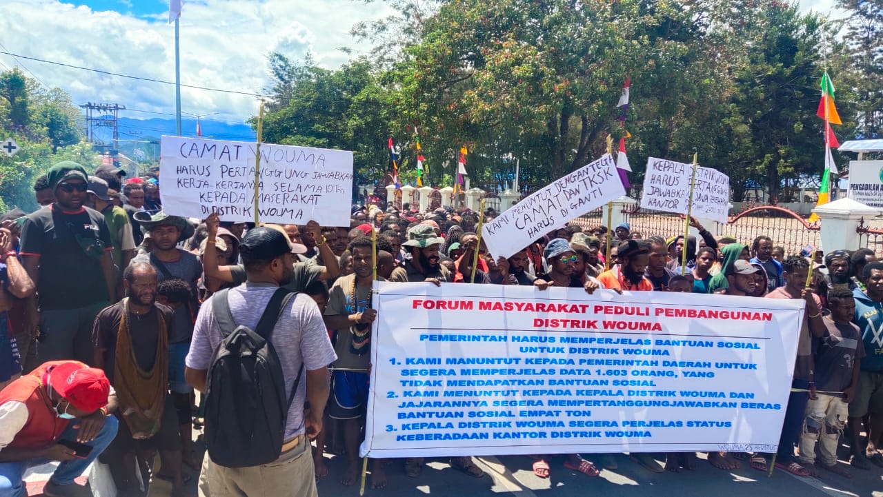 Aksi itu bertujuan untuk meminta penjelasan langsung dari pemerintah terkait Penyaluran Dana BLT yang dinilai kurang adil dan juga penyaluran bantuan beras sosial kepada masyarakat Distrik Wouma.