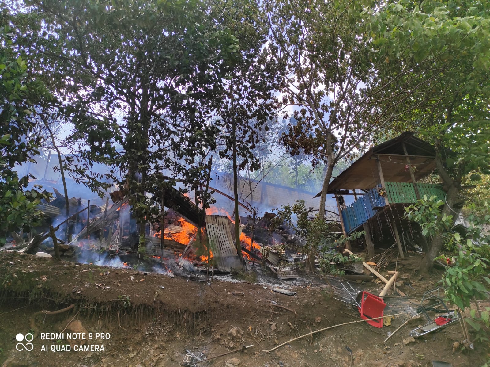 Lanjut kapolsek, melihat kejadian itu, masyarakat yang berada di sekitar lokasi kejadian berusaha memadamkan api dengan menggunakan alat seadanya namun api susah dipadamkan lantaran kondisi rumah yang terbuat dari kayu.