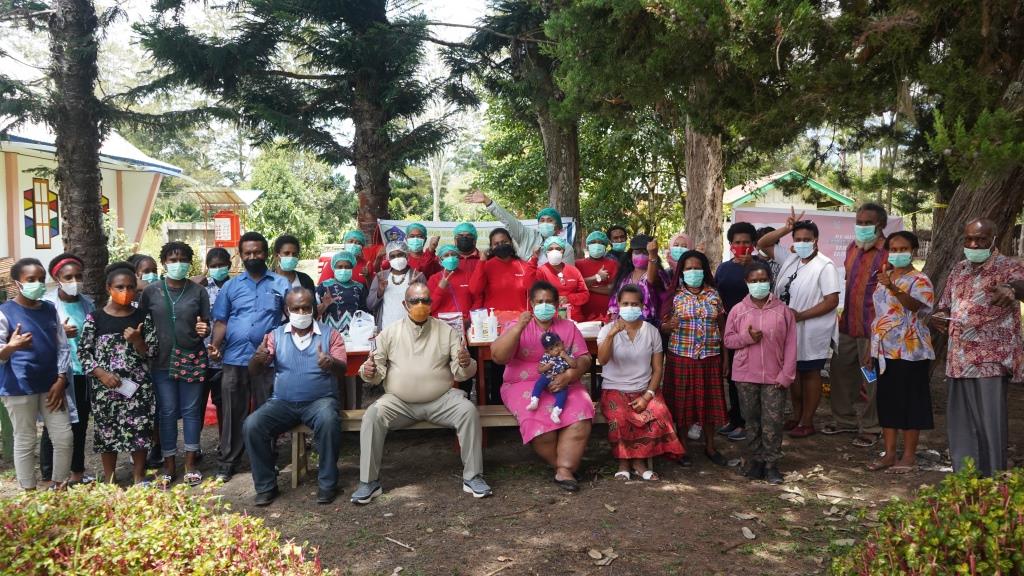 Wakil Bupati Jayawijaya Saat Foto Bersama Dengan Tenaga PMI dan Tenaga Kesehatan Usai Pelaksanaan Vaksinasi di Halaman Gereja Katolik Kapela Yesus Ninom Welago Honelama