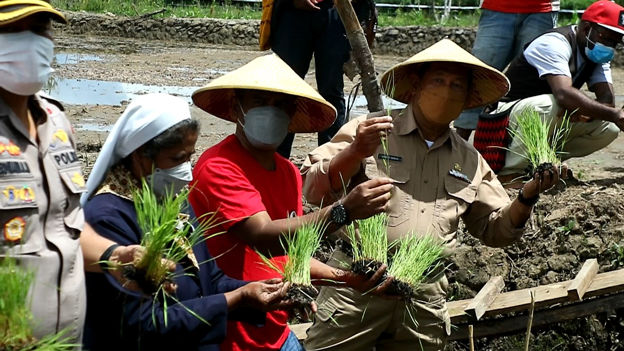 Harapan itu disampaikan Bupati Kabupaten Jayawijaya, Jhon Richard Banua SE.M.Si, usai melakukan penanaman Perdana Padi di Lahan Persawahan kelompok binaan Paroki Santo Stevanus Kimbim Distrik Asologaima Kabupaten Jayawijaya, Senin (14/2/2022).