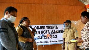 Wamena (KT) – Ketua Gabungan Organisasi Wanita (GOW) Kabupaten Jayawijaya, Lince Kogoya Yogobi, meresmikan Objek Wisata Hutan Kota Isakusa yang ditandai dengan Pengguntingan Pita Papan Nama, Selasa (22/2/2022) di Kampung Isakusa Distrik Hubikosi Kabupaten Jayawijaya.
