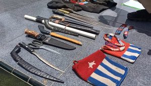 Wamena (KT) – Kepolisian Polres Jayawijaya berhasil mengamankan sejumlah senjata tajam (Sajam) dan lambang bendera bercorak bintang kejora (BK) dalam kegiatan swiping dan rasia yang dilakukan di Wamena tepatnya di pertigaan Pikhe Distrik Hubikiak Kabupaten Jayawijaya.