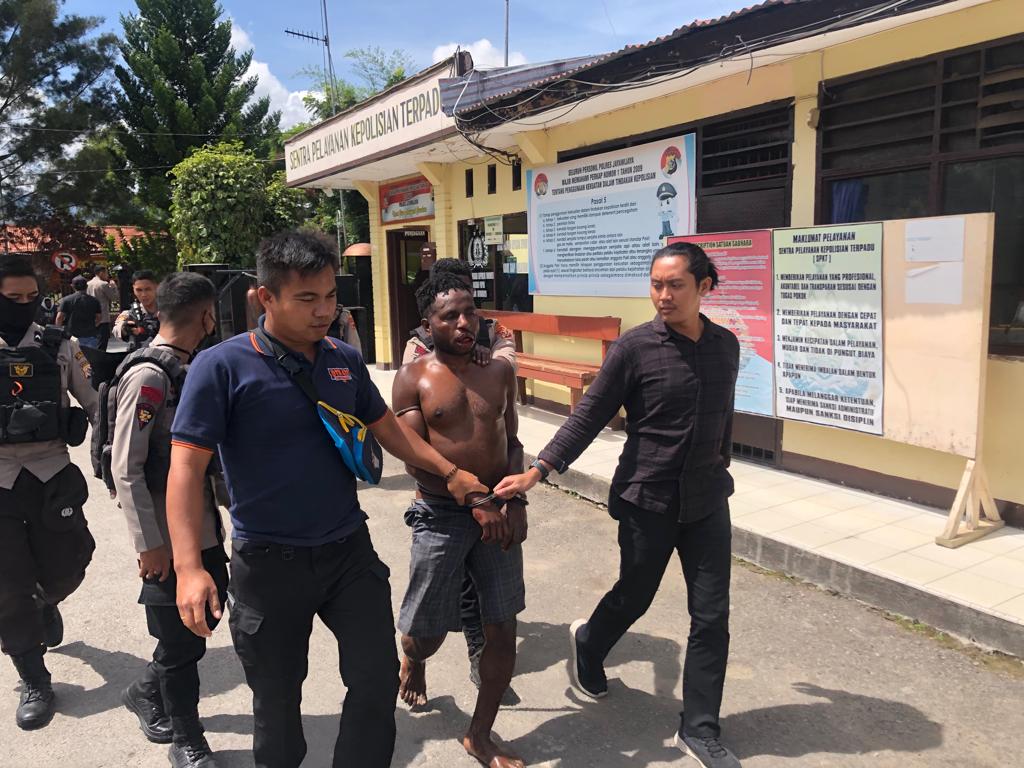 Kepolisian Polres Jayawijaya menangkap pelaku atas tindakan kejahatan pelaku karena telah mengancam dengan benda tajam dan merampas kendaraan bermotor milik salah satu abang ojek.