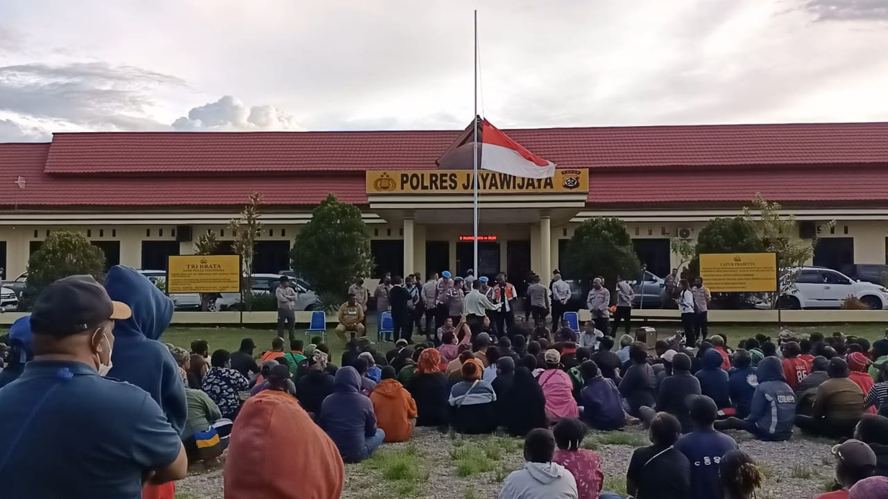 Keluarga Korban Saat Mendengar Keterangan Dari 6 Saksi di Halaman Mako Polres Jayawijaya