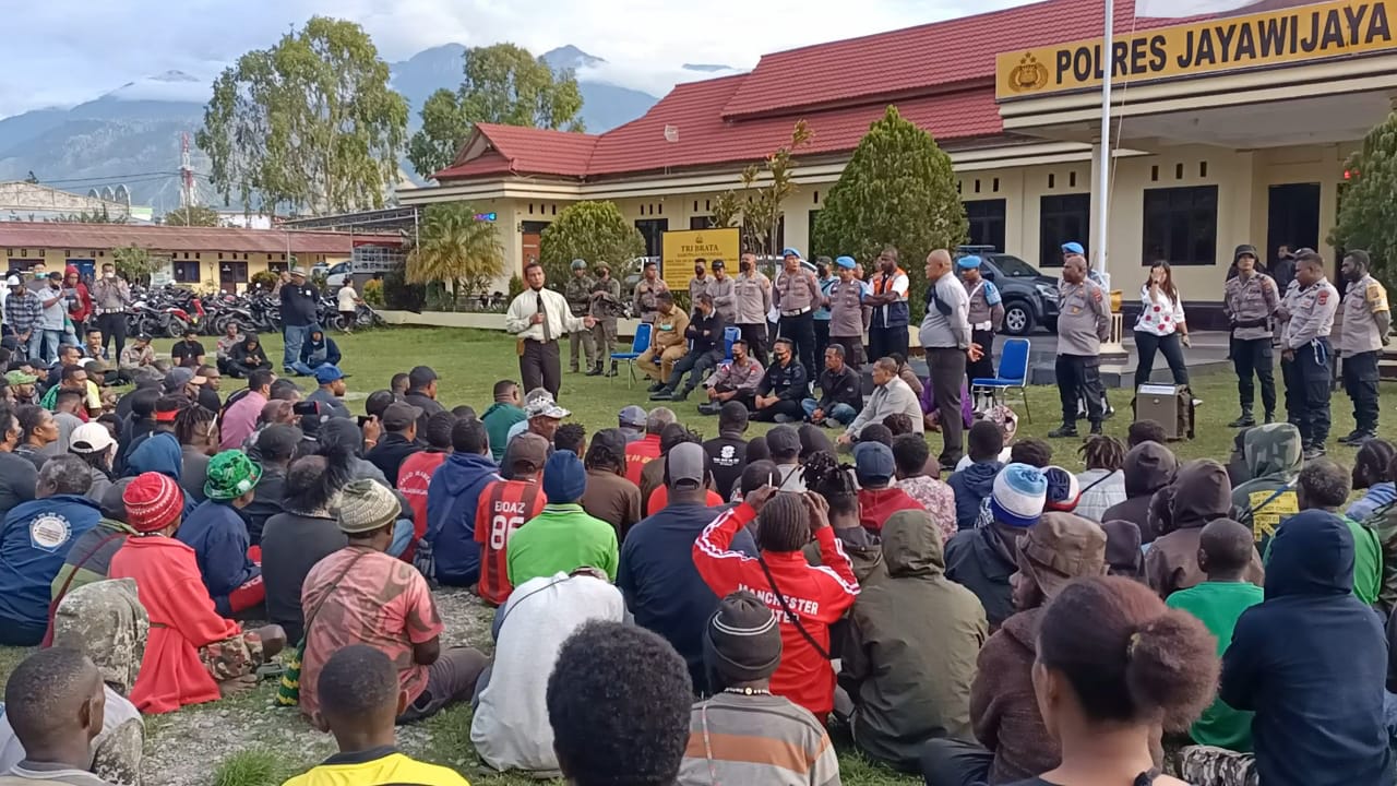 Keluarga Korban Saat Mendengar Keterangan Dari 6 Saksi di Halaman Mako Polres Jayawijaya