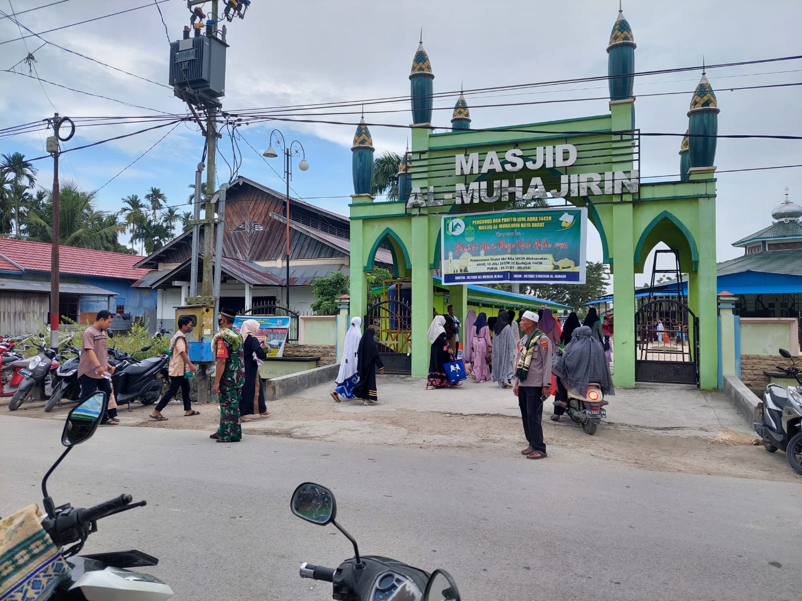 Terlihat juga pihak panitia penyelenggara Sholat pun terus memberikan himbauan tentang pentingnya menjaga prokes karena Covid-19 masih ada di sekitar kita.