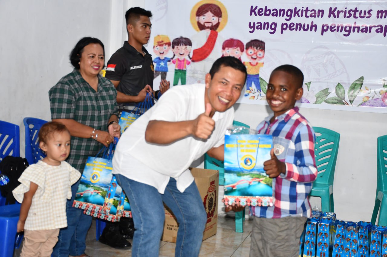 Jayapura, (KT)- Komandan Lantamal X Jayapura Brigjen TNI (Mar) Feryanto P. Marpaung didampingi Ketua Korcab X DJA III Ny. Merry Feryanto Marpaung mengunjungi dan berbagi berkat berupa handuk, sembako, susu formula dan makanan ringan kepada anak-anak panti asuhan Karya Anak perdamaian, Pantai Asuhan Waritore dan Panti Asuhan Hole Roo Sentani serta Lembaga Kesejahteraan Sosial Anak Pelangi Abepura, Sabtu (8/4/2023).