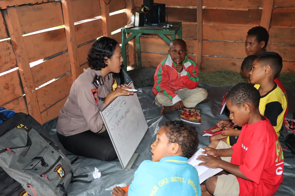 Wamena, (KT)– Sebagai upaya untuk meningkatkan Indeks Pembangunan Manusia (IPM) dalam dimensi pengetahuan, Polda Papua melalui Satgas Rasaka Cartenz hadir di asrama masyarakat Yalimo, Distrik Wamena Kota, Kabupaten Jayawijaya, Selasa (2/5) dengan program Si-Ipar atau yang akrab disapa masyarakat Polisi Pi Ajar.