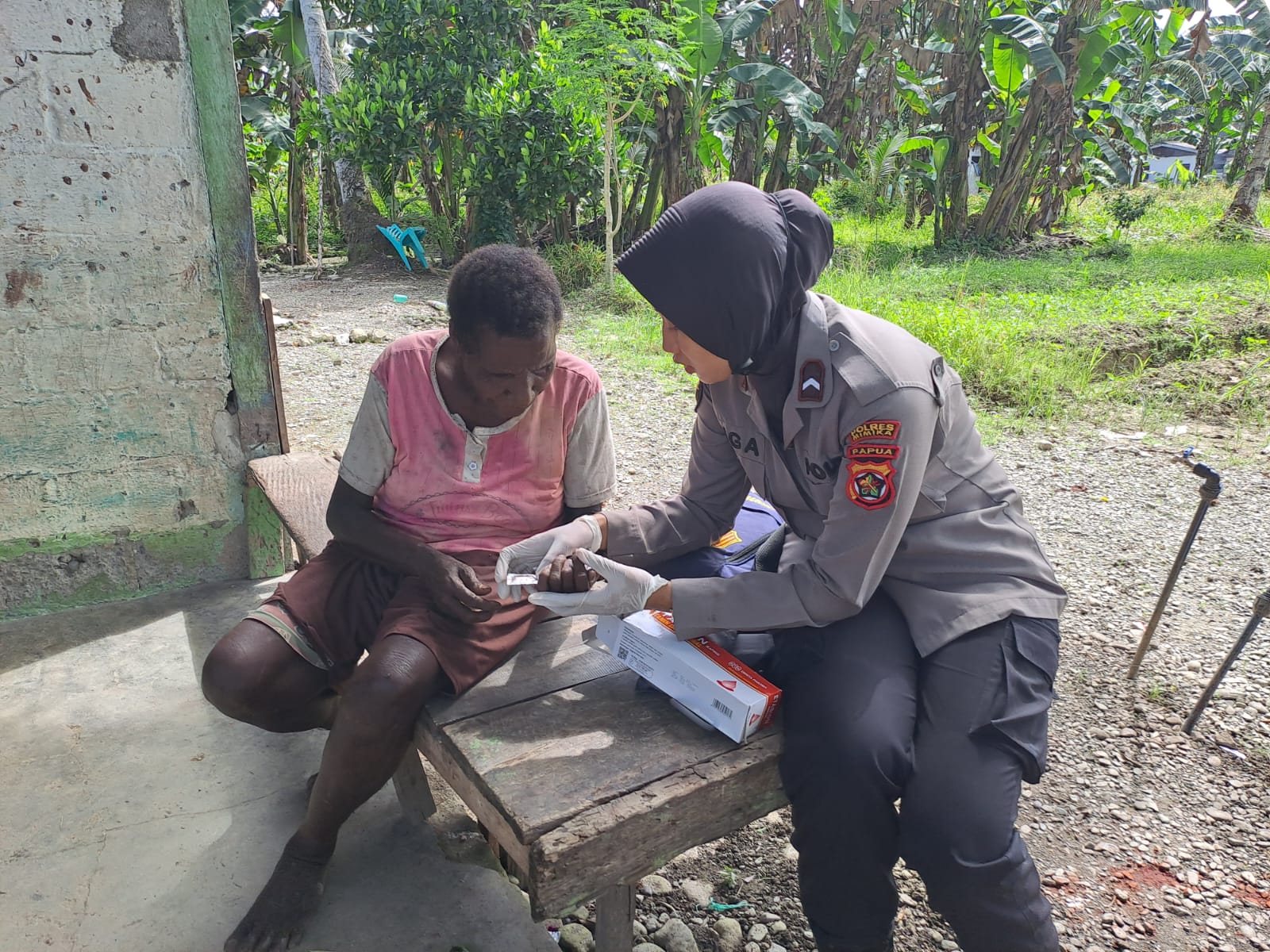 Kali ini di Kampung Mware, Distrik Mimika Timur, Kabupaten Mimika, Provinsi Papua Tengah, Personel gangguan-gangguan Binmas Keladi Sagu turun langsung manyambangi masyarakat sembari menanyakan keluhan mengenai gangguan penyakit yang diderita warga, Rabu (17/5).