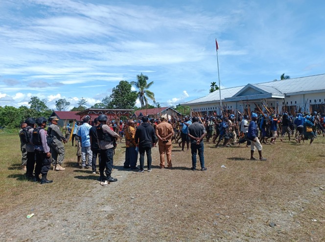 Jayapura, (KT)– Pemerintah Daerah Nabire bersama TNI-Polri melakukan pertemuan di Kantor Distrik Uwapa pasca konflik 2 kelompok warga dari Suku Mee dan Suku Dani yang mengakibatkan 2 warga meninggal dunia dan 8 orang luka akibat terkena panah, serta pembakaran terhadap puluhan rumah warga.
