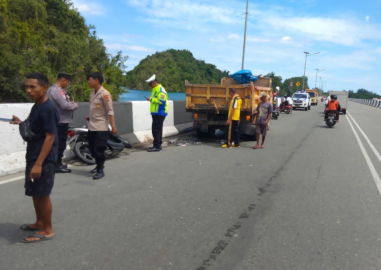 Ia melajukan SPM Honda Beat Street nomor polisi PA 2737 RK dengan kecepat tinggi hingga tidak dapat mengendalikan laju kendaraannya kemudian menabrak satu unit mobil dump truck Mitsubishi nomor polisi PA 8658 AG yang diparkir di sebelah kiri jalan oleh pengemudinya bernama Agus (36) karena alami ban pecah (kempes).