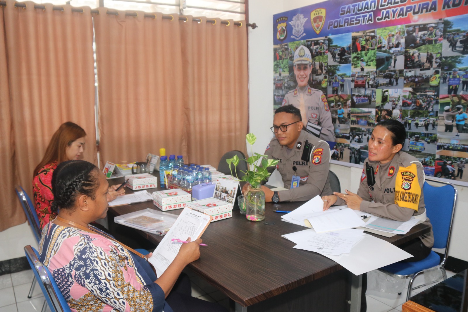 Jayapura, (KT)- Perwakilan Ombudsman RI di Provinsi Papua pagi knj mengunjungi Polresta Jayapura Kota dalam rangka melakukan penilaian kinerja pelayanan publik pada masing-masing sub bidang pelayanan yang ada di Mapolresta, Kamis (11/7).